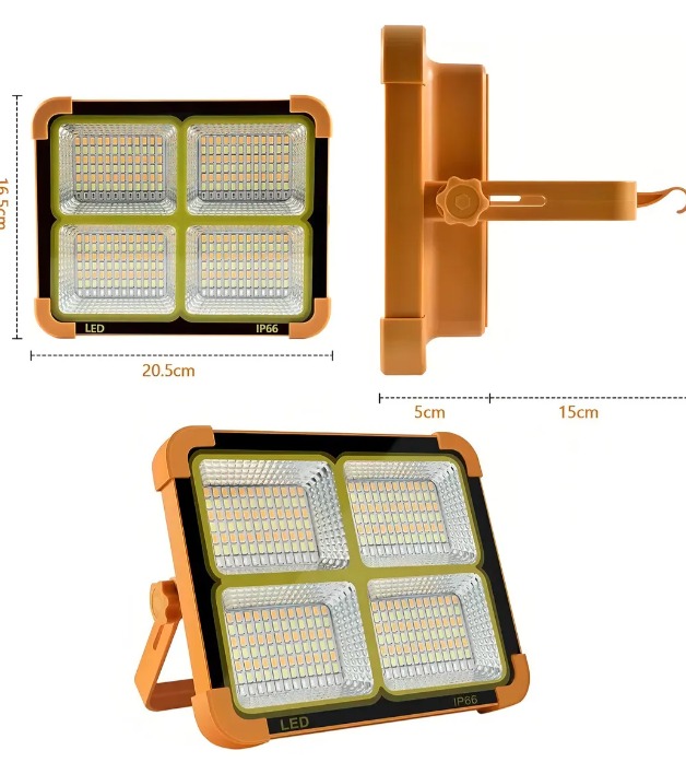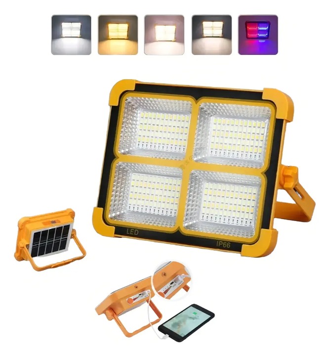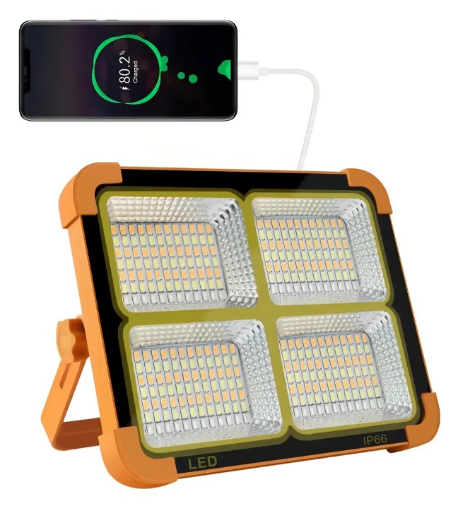 Foco solar recargable. Cambia de modo de iluminación con solo pulsar un botón, lo que lo convierte en el complemento perfecto para zonas con poca luz, tanto en interiores como en exteriores. Este foco LED solar recargable cuenta con un panel solar que permite cargarlo durante el día con luz solar, ahorrando energía y protegiendo el medio ambiente. También puede usarse como batería externa para cargar teléfonos móviles y otros dispositivos electrónicos.