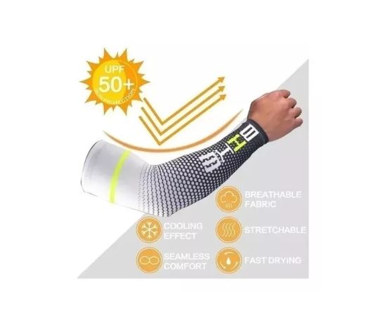 Tejido muy elástico, puede estirarlo al doble de su longitud original. No se sentirá apretado o una restricción incómoda. la manga del brazo es unisex. Mangas de brazo para mujer y hombre. Ya sea que las mujeres o los hombres lo lleven bien y no hay presión o incomodidad para que usted realice ninguna actividad.