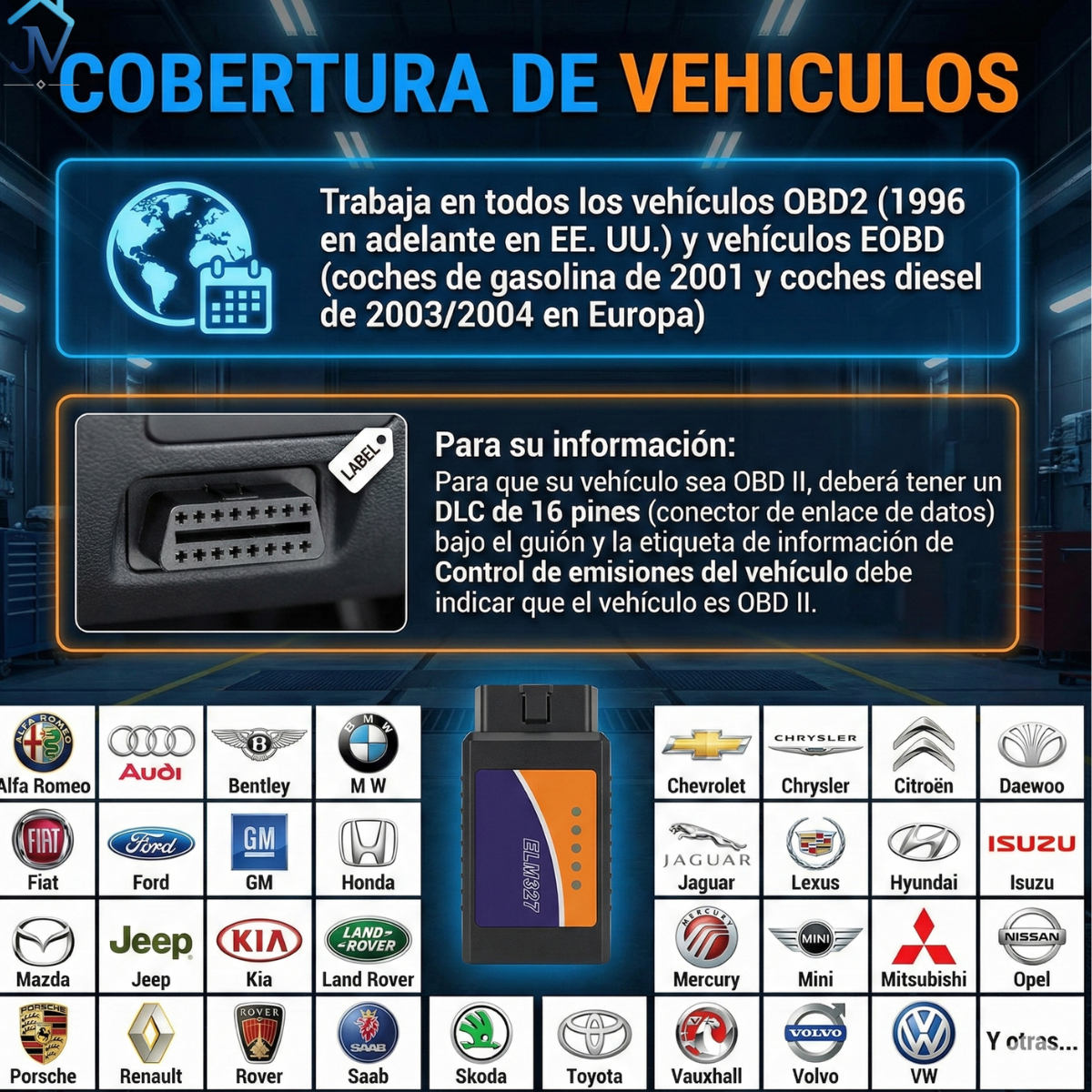 Para coches europeos: funciona en coches obd2 desde 2001.